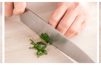 3. For serving the rice ball, keep 6 shiso leaves aside (they will be placed under the rice ball later). Roll up the rest of shiso leaves and cut into julienned strips.