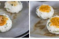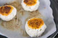 8. Cook the bottom of the rice for about 2.5 minutes. When it’s nicely brown, brush the oil on the top of the rice balls and flip to cook the other side for 2.5 minutes or until nicely brown.