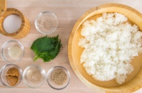 • 3 cups cooked Japanese short grain rice ((I cooked 1.5 rice-cooker-cups (240 ml) uncooked rice *See Notes))