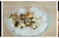 - Boil the water in a small saucepan, and gently submerge the quail eggs into the boiling water. Cook for 3 minutes and transfer to iced water to let cool. Peel the eggs and set aside.
