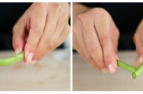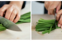 - Discard the end of garlic chives and cut them into 4 equal pieces.