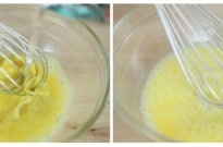 Whisk the egg in a large bowl, and add water, leaving about ¼ cup in a measuring cup.