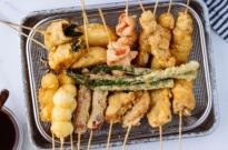 Kushikatsu can be made with all kinds of meat, seafood, and seasonal vegetables. Variety is key, so the list is a long one.