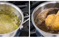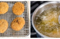Deep fry for 3 minutes on each side (total 6 minutes). For the first 2 minutes, don’t touch the patties as they are soft and easy to break.