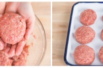 To avoid the meat sticking to your hands, make sure to use a small amount of oil to rub on your hands before shaping the meat patties with your hands.